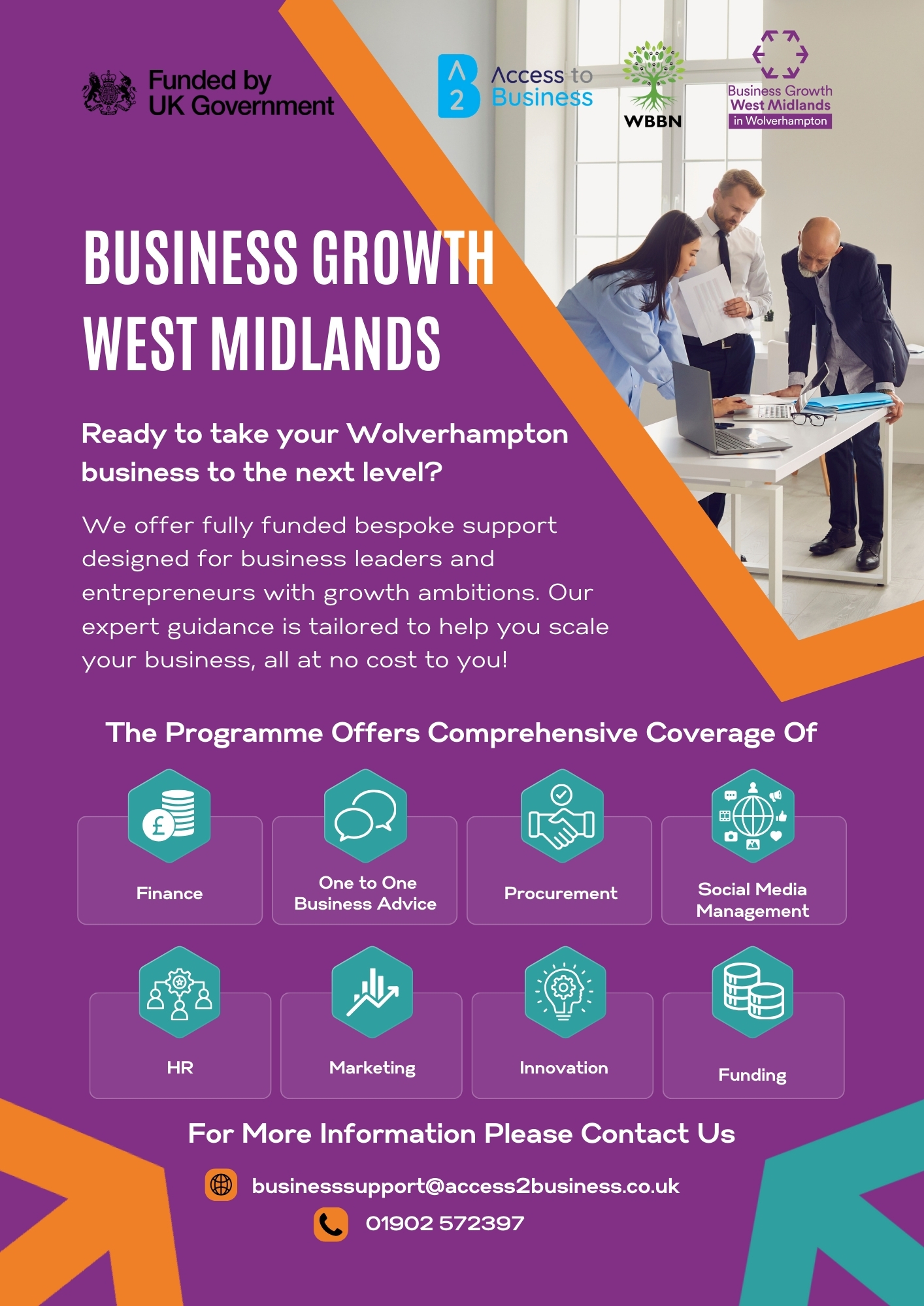 Contact us TODAY on 01902 572 397 to get your personalised business review, including information on accessing finance, grants, marketing and more.